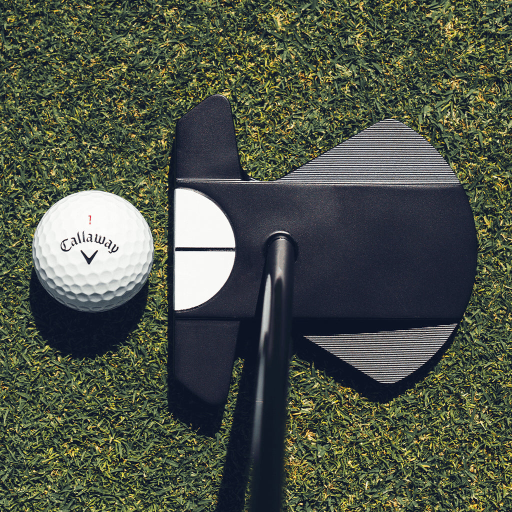 Odyssey’s next revolutionary alignment technology, the ½ Ball design frames the ball helping to center your impacts and improve your aim.